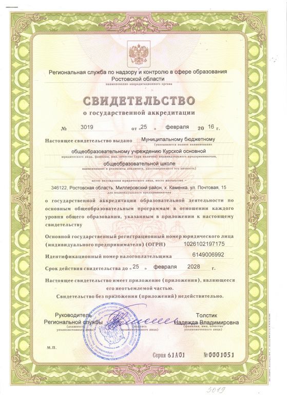 Полное наименование образовательной организации* Муниципальное бюджетное общеобразовательное учреждение Курская основная общеобразовательная школа